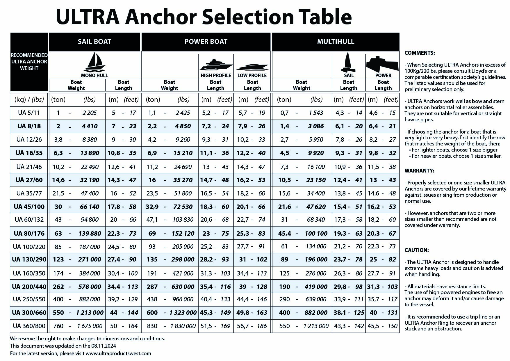 This is the most suitable ULTRA Anchor model based on the measurements you entered.